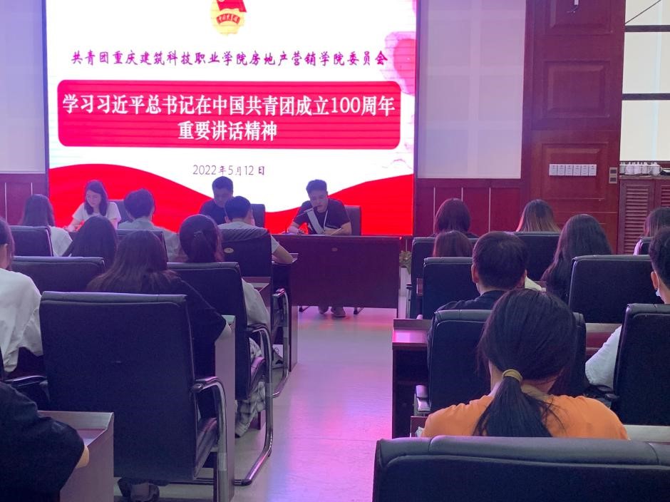 为继续贯彻落实学习习近平总书记在中国共青团成立100周年重要讲话精神,房地产营销学院团总支于5121700在笃学楼4305会议室组织专题学习。学院党支部书记孙小川、学院团总支书记彭家正、学院团总支副书记(学生)白治菲、学院学生会主要干部及各班团支部书记参加本次学习。