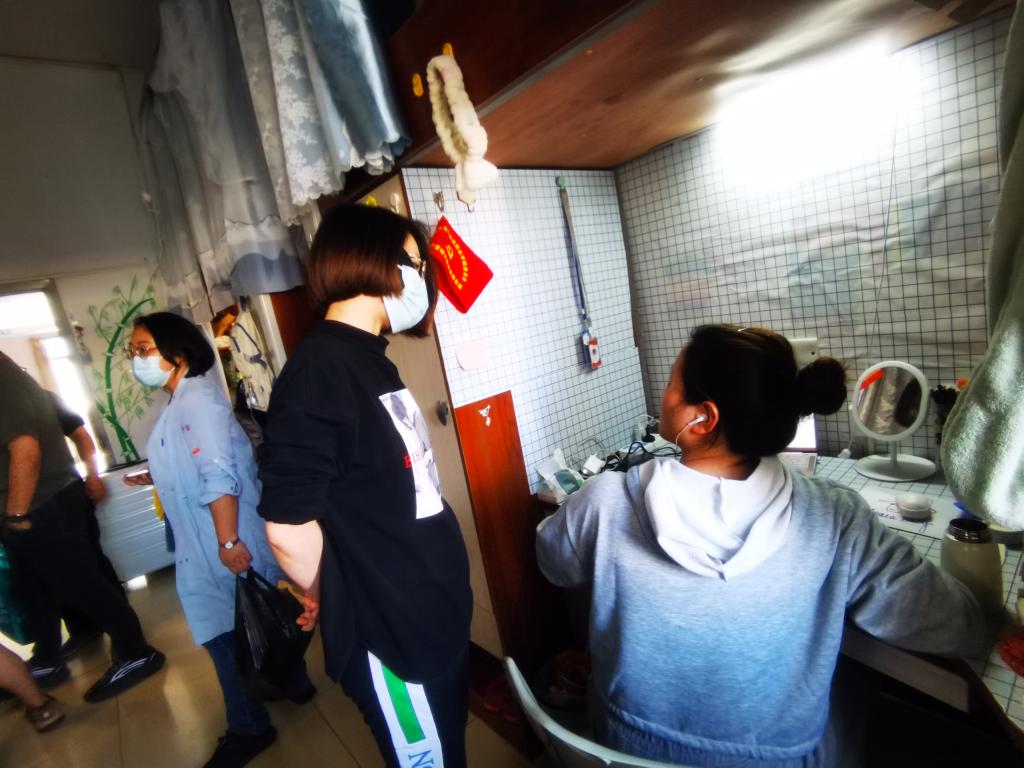 为贯彻落实近期疫情防控要求,增强校内学生防控意识,引导学生加强在宿舍上网课期间的自我管理,3月15日下午,房地产营销学院副院长周旖、党支部书记孙小川、院长助理陈雨,带领学院全体专职辅导员老师,深入学生宿舍看望学生,了解疫情防控安全及学生上网课情况。
