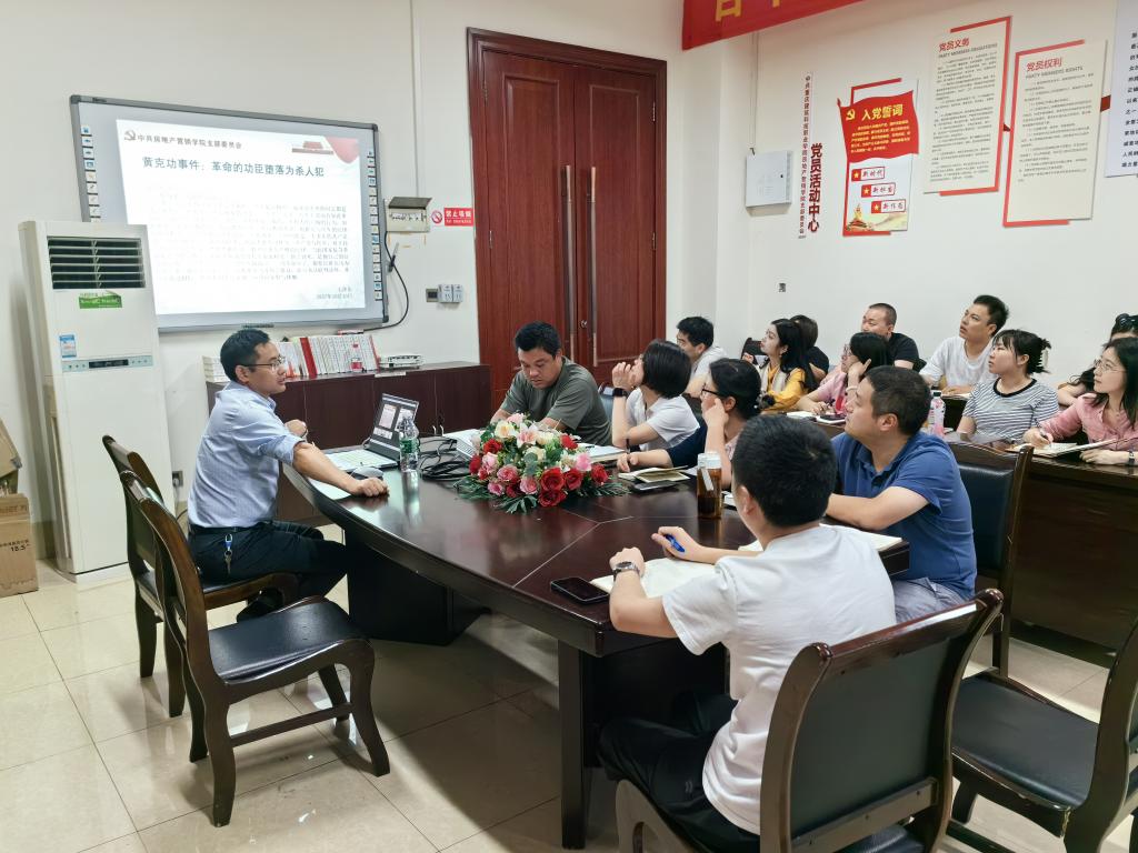 为深入学习贯彻修订后的《中国共产党纪律处分条例》,进一步严明党的政治纪律和政治规矩,提升党员同志的纪律意识,确保党的各级组织和全体党员始终在思想上、政治上、行动上同党中央保持高度一致,2024年6月5日,房地产营销学院党支部在笃学楼3412会议室召开党纪学习教育活动,由学校党委副书记李果同志给党支部全体党员讲主题为“知敬畏、戒畏惧、永葆优良作风”的纪律党课。