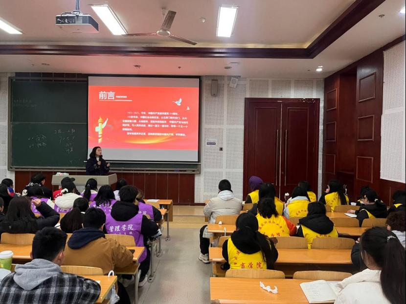 为深入贯彻落实党的教育方针,切实做好入党申请人的思想政治教育和理论水平提升工作,智慧商贸学院学生党支部于3月17日中午在笃学楼2305教室成功开展了入党申请人培训活动。本次培训以“感恩于心,责任于行”为主题,由黄银荣书记主讲,旨在帮助入党申请人深入了解中国共产党的历史、理论、成就以及坚持党的领导的重要性和意义。