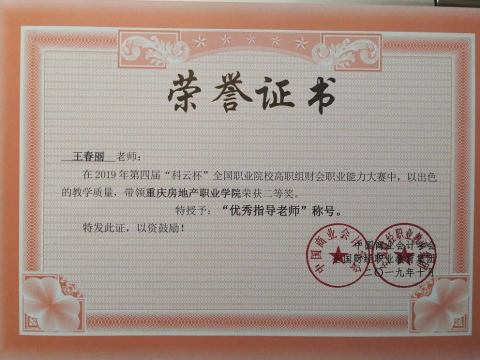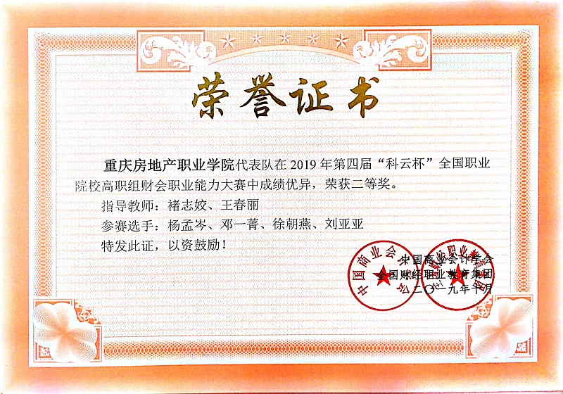2019年10月26日,打通就业最后一公里——第四届“科云杯”高职组财会职业能力大赛网络赛开赛。参赛队员是来自17级财务管理专业的杨孟岑、徐朝燕、刘亚亚和邓一菁。比赛共分为上下半场,上午场为财务会计实操竞赛环节;下午场为管理会计竞赛环节,各3小时,共计6个小时。经过激烈的角逐,beat365代表队获得重庆赛区二等奖及全国二等奖,较之去年的三等奖,成绩有了较大飞跃,为beat365赢得荣誉,同时褚志姣和王春丽老师获得优秀指导教师奖。
