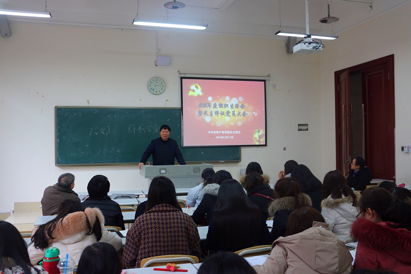 为深入学习贯彻党的十九大和市委五届三次全会精神,房地产商学院党总支、教师党支部、学生党支部于2019年1月17日在3408教室集中召开了组织生活会和民主评议党员会议。学校纪委书记陈锦连,房地产商学院党总支书记孙佳、教工党支部廖忠友书记、学生党支部陈小雨书记、教工党支部任媛副书记、党总支高雅组织员以及学院全体党员参加了会议。会议由房地产商学院党总支书记孙佳主持。