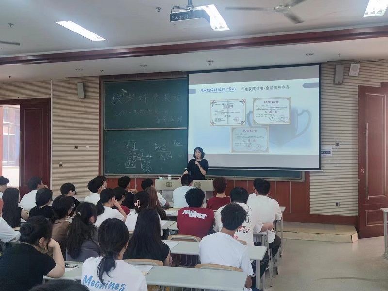 在活动的第一部分中,由李倩老师主讲,重点介绍了财富管理与金融科技应用专业,包括学校概况、专业课程、专业比赛、专业职业发展、学院的实训基地和专升本考试等内容。李老师详细解释了学校在该领域的卓越地位以及专业课程的设置,以满足不断发展的金融行业的需求。她还强调了专业比赛的重要性,为学生提供锻炼和展示自己技能的机会,并探讨了专业毕业后的就业前景。