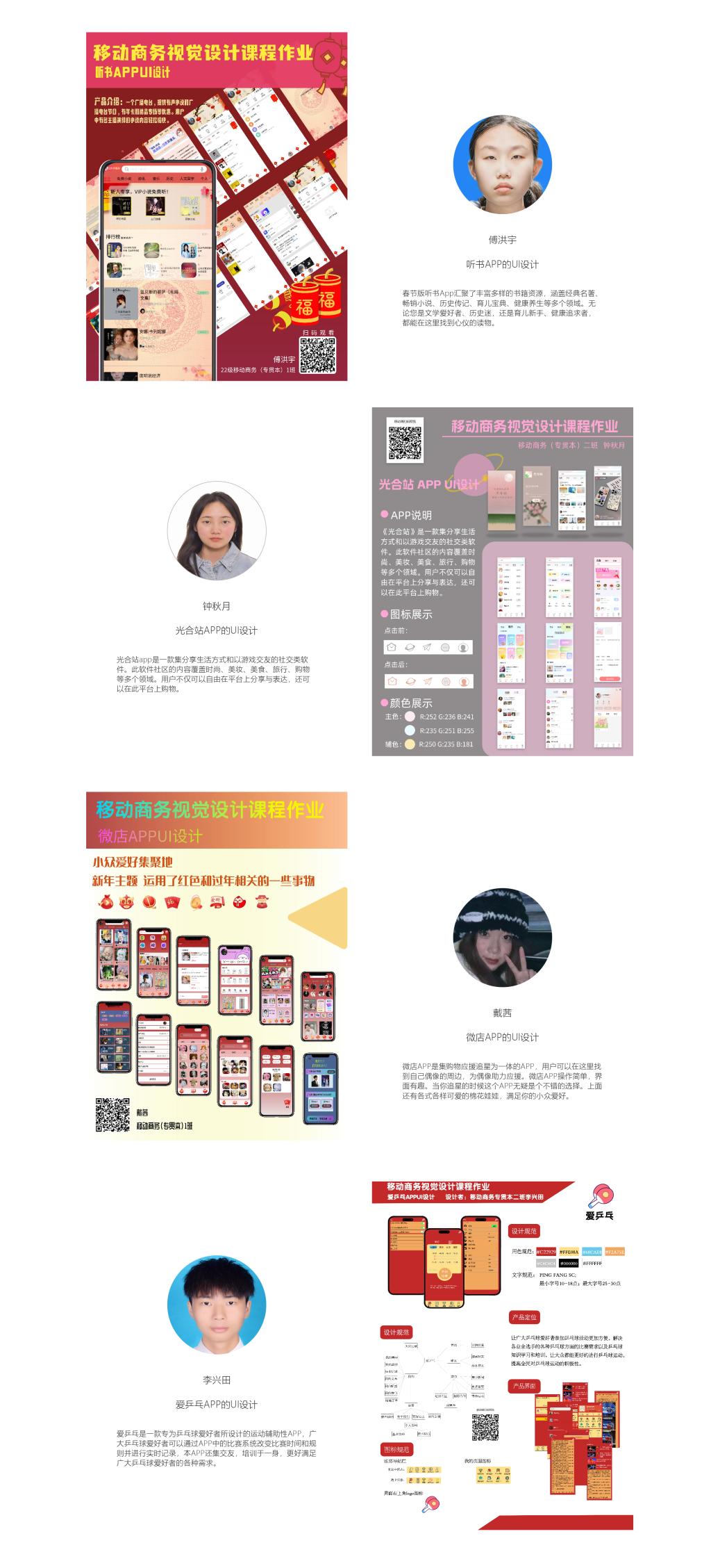 移动商务视觉设计是现代商业中非常重要的一门课程,它不仅涉及到商业的发展,也与品牌形象的塑造息息相关。本次作业展是为了展示学生的学习成果,让他们有机会向外界展示自己的设计才华。同时,展览也促进了学术交流和企业间的合作,为优秀设计人才提供了更多的机会。我们希望通过这次展览,能够让学生、教师和企业之间有更多的交流和合作,共同推动移动商务的进步和发展。