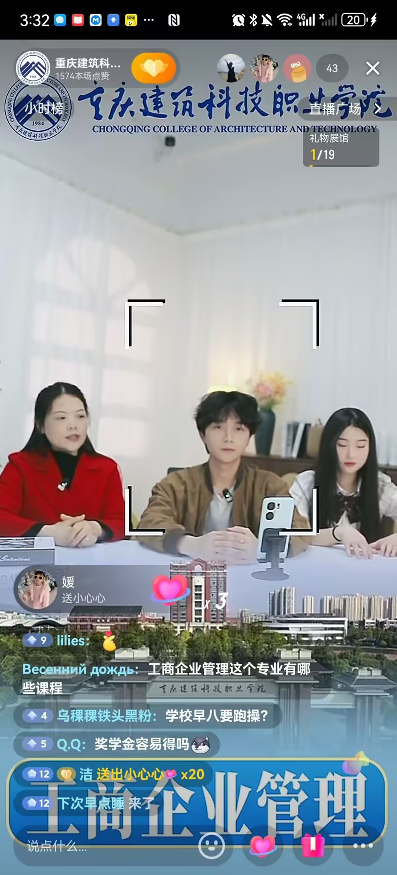 在答疑环节,针对弹幕高频问题如“专业学习课程体系”“职业技能竞赛分类”“专升本衔接政策”等,晏旖嫔教师与在场助播学生逐一解答。