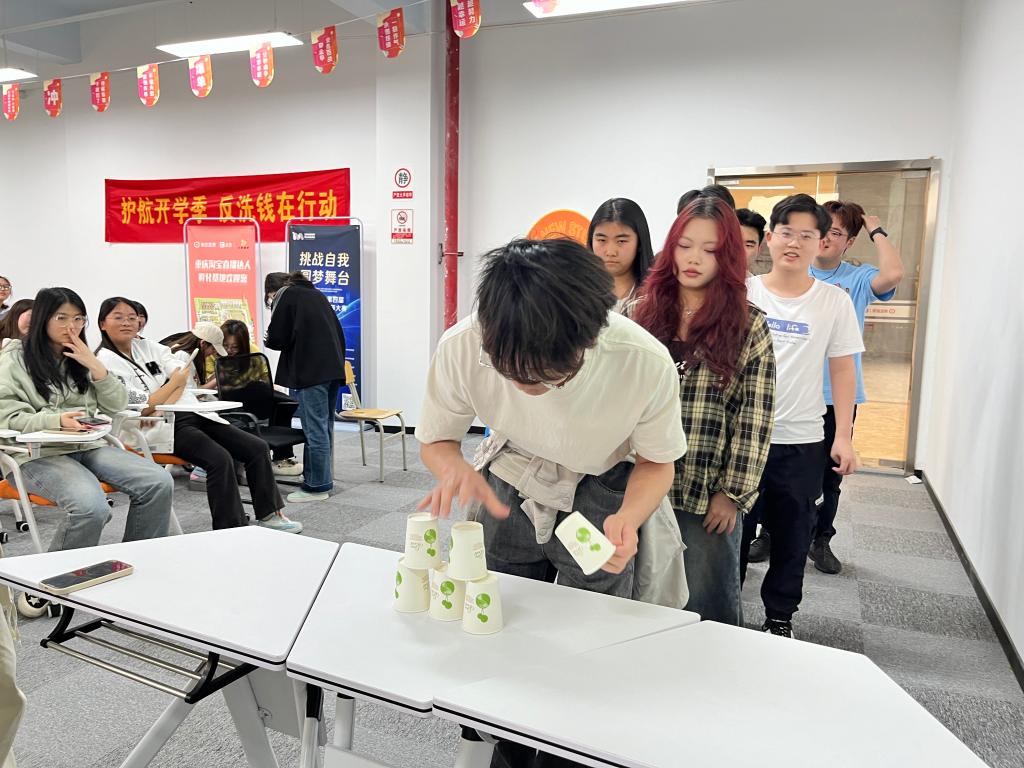 随后,同学们组成了三支服务劲旅进行了大比拼,魔法少女战士队率先喊出“云想衣裳花想容,姐妹出手必成功”,建筑NO.1队也不甘示弱,“贴心服务0差评 满意服务百分百”,坚定有力的口号彰显着专业拼搏,董你张狂队高呼“服务到位,接待不累,售后有情,618共赢”,热情自信的模样感染力十足。在互动环节大家积极参与速叠杯挑战、精准投环等小游戏,大家朝气蓬勃,满怀热爱与拼搏激情,在协作中成长,在欢笑中收获,相信未来不管遇到什么挑战,都能携手并肩,一路披荆斩棘!