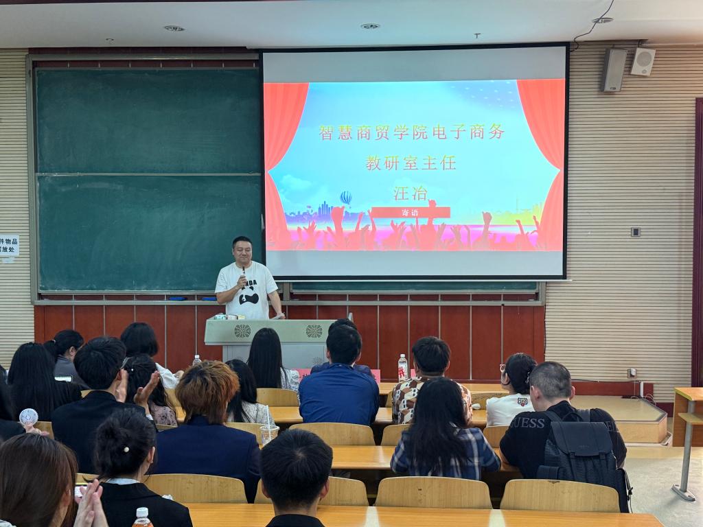 活动当天,校领导、企业嘉宾及师生代表齐聚现场。智慧商贸学院电子商务教研室主任汪冶致开幕辞,他强调:“创新是推动社会进步的核心动力,青年学子应勇担时代使命,将创意转化为实践成果。”随后,博拉网络股份有限公司快手项目主管姜柚伶、校企合作培训导师徐林波等企业专家,以及电子商务、大数据与财务管理等专业的多位教研室主任组成评委团,为参赛项目提供专业指导与评审。
