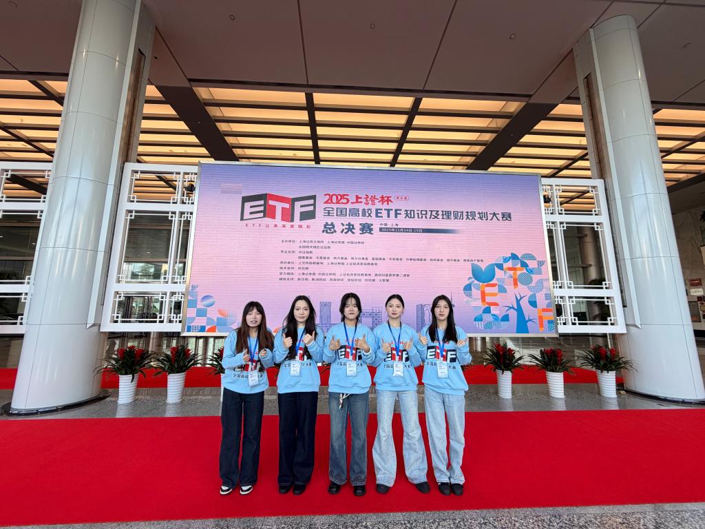 同学们自5月以来经历了预选赛、半决赛,经过不懈的努力最终站上了“上证杯”决赛的舞台,与一众来自211、985、双一流大学的参赛队伍同台竞技,通过理财规划方案展示以及金融知识竞答,多维度展现了来自高校学子的风采,同时也让同学们感受了在上交所上市敲钟的仪式感。此次参赛也得到了光大证券的鼎力支持,与券商的联合让同学们也收获了宝贵的实践操作经验,也是助力同学们在这个业内最高规格、最具影响力之一的投教赛事中走向全国舞台的最强后援团。