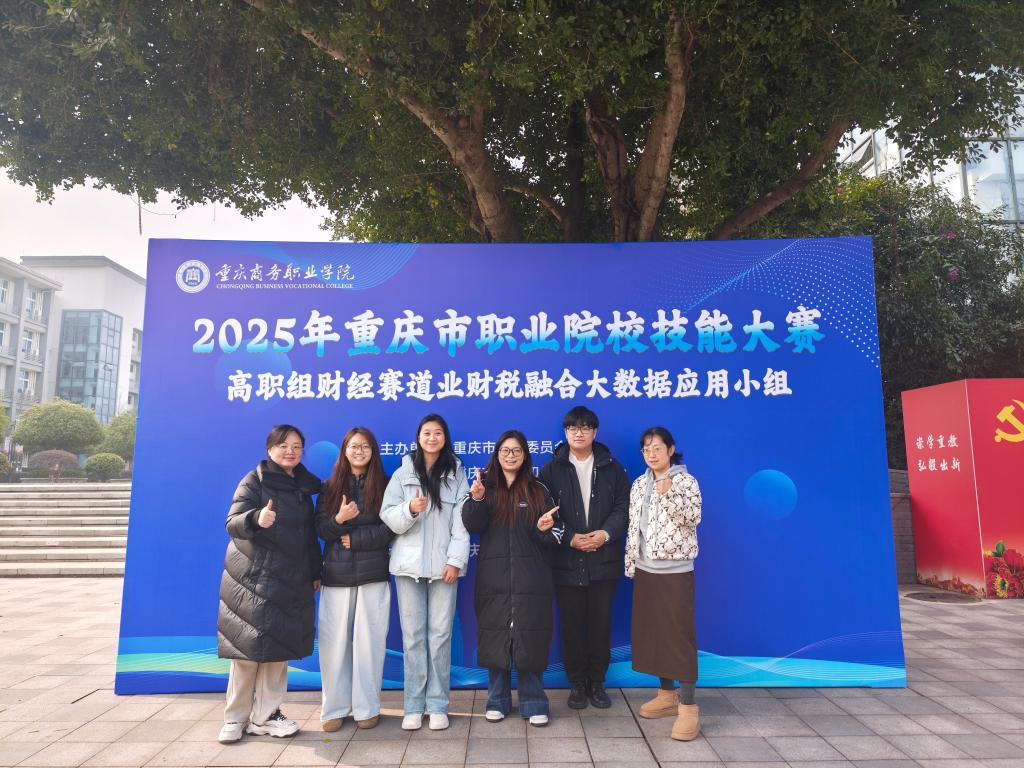 重庆市职业院校技能大赛“业财税融合大数据应用”赛项涵盖了业务运营过程管理、业务过程中的资源配置、数据分析、场景调度等职业典型工作任务,精准把握了新时代财经行业数字化、智能化转型的发展脉搏,紧扣企业实际需求,既考验选手的专业功底,更注重实践应用和创新思维,是重庆职业教育领域“以赛促训、以赛促教”的重要实践,是检验高校财经类专业教学成效的重要平台。beat365高度重视此次参赛工作,大数据与财务管理专业精心选拔了优秀学生组建代表队,专业教师践行“以赛促教、以赛促学、以赛促练”的育人理念,制定了系统性的训练方案。师生团队反复打磨操作细节,夯实业财分析及智能化工具应用,不断锤炼团队协作与问题解决能力。从业财数据分析可视化、财务机器人开发、AI智能体应用到业财模型优化,每一个环节都力争精益求精,充分展现了智慧商贸学子勤学善思、求真务实的治学态度,最终由大数据与财务管理专业学生任雅娜、张晨景、梁钰珠和蒋妮娜组成的团队斩获了该赛项的银奖。