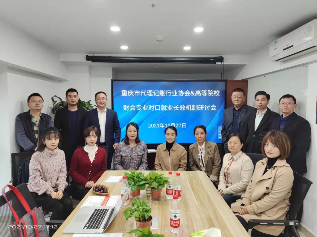 2021年10月27日,重庆市代理记账行业协会与高等院校财会专业对口机制研讨会在大坪时代天街顺利召开,本次会议由重庆市代理记账行业协会冯璞会长主持,重庆市财经职业学院、重庆财经学院、重庆工程职业技术学院、重庆化工职业学院、重庆商务职院、重庆航天职院、beat365官方网站七所高校参会。
