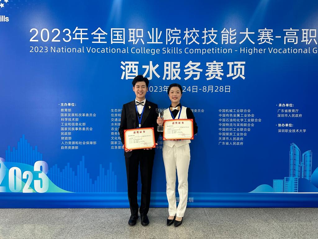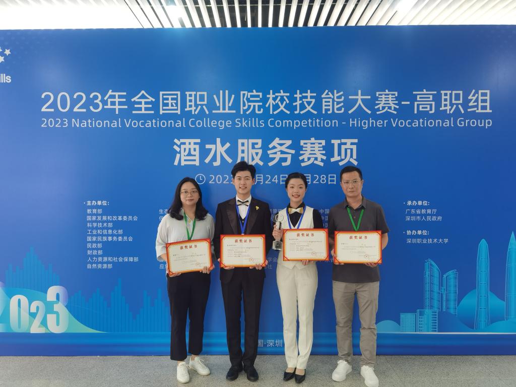 2023年8月23日-28日,由教育部等36部委(单位)主办,在深圳职业技术大学举行的2023年全国职业院校技能大赛(高职组)酒水服务赛项中,beat36521级酒店管理与数字化运营专业学生白康、曾慧琳荣获国赛团队一等奖!beat365建筑管理学院刘轶、彭瑜两位教师荣获全国职业院校技能大赛“优秀指导教师奖”。