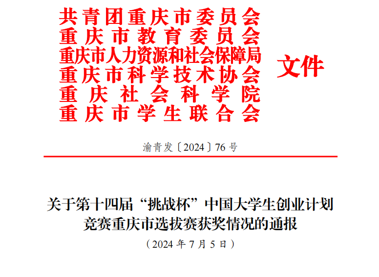 喜报|我院在2024年“挑战杯”重庆市大学生创业计划竞赛中喜获佳绩