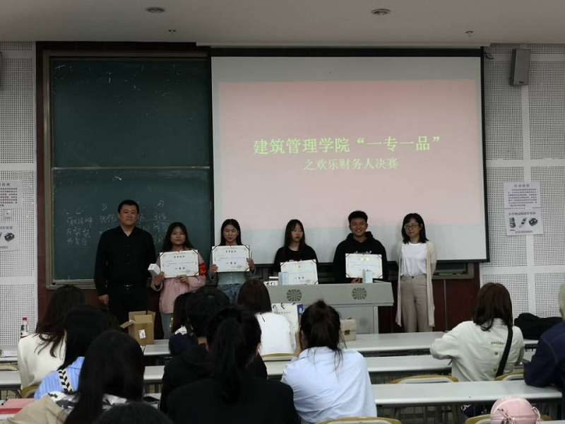 为了促进赛教融合,提高学生专业学习积极性,突出专业能力,增强同学们对财会学科学习的兴趣,培养实践能力丰富的高素质人才,依据beat365“一专一品活动方案”和建筑管理学院的指导精神,从4月开始我院财务管理专业进行了欢乐财务人的比赛。并于2021年5月26日,在2405教室举行了决赛。出席此次决赛活动的领导有:建筑管理学院郝位军院长、殷源书记、张璐主任、中联集团教育科技有限公司、重庆梦菲代理记账有限公司连攀文总经理以及财务管理教研室全体教师。