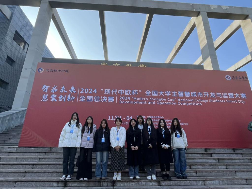 2024年11月2日第四届现代中欧杯全国大学生智慧城市开发运营大赛全国总决赛在河北石家庄学院举行。本次大赛由中国建设教育协会指导、中国建设教育协会房地产专业委员会主办、河北石家庄学院和北京现代中欧软件开发有限公司联合承办。大赛以“智启未来·慧聚创新”为口号,吸引了来自全国52所高校,182支队伍,共计540余名学生踊跃参与,共同角逐智慧城市开发运营大赛最高荣誉。
