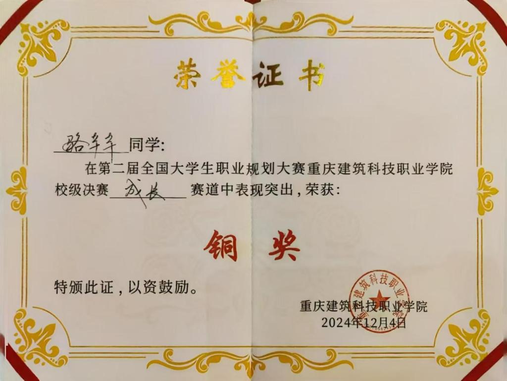 经过激烈的角逐,智慧康养学院2023级婴幼儿托育服务与管理一班杨丽红同学斩获“成长赛道”金奖,24级酒店管理与数字化运营二班骆芊芊同学荣获“成长赛道”铜奖。22级健康管理三班邓丽婷同学荣获“就业赛道”银奖,22级婴幼儿托育服务与管理三班刘星汝同学荣获 “就业赛道”铜奖,张璐老师荣获“优秀指导教师”称号,学院荣获“优秀组织”奖。