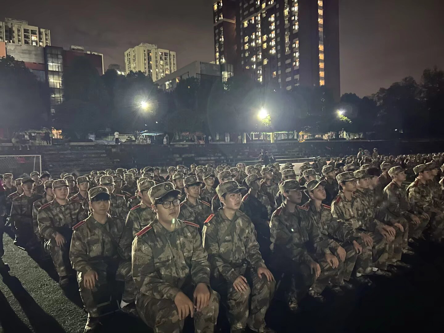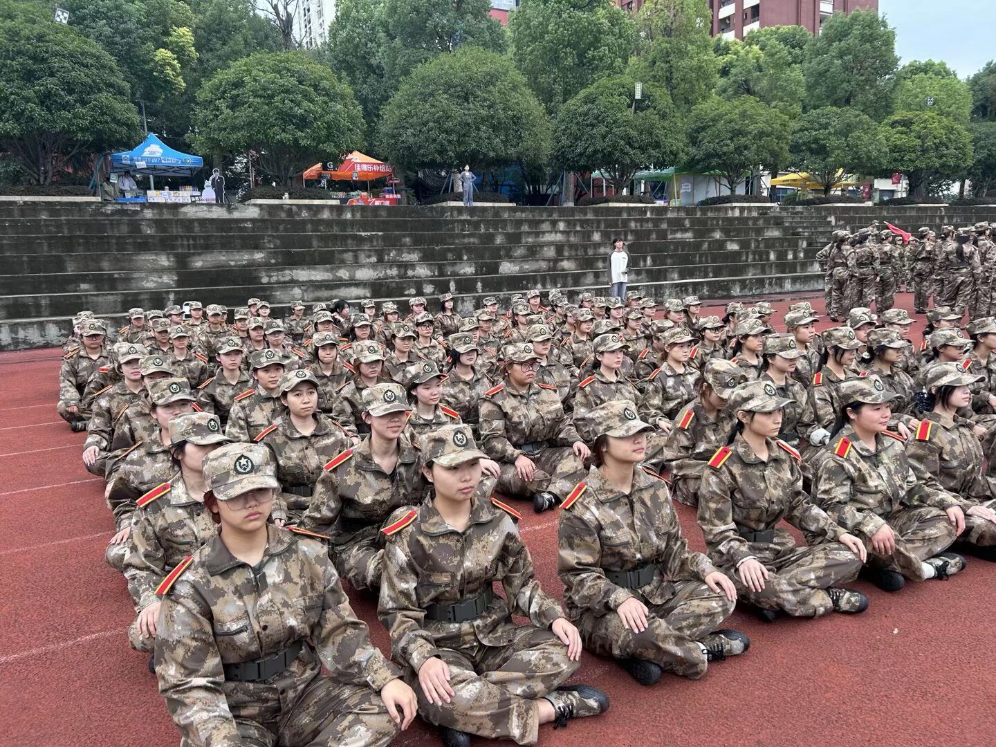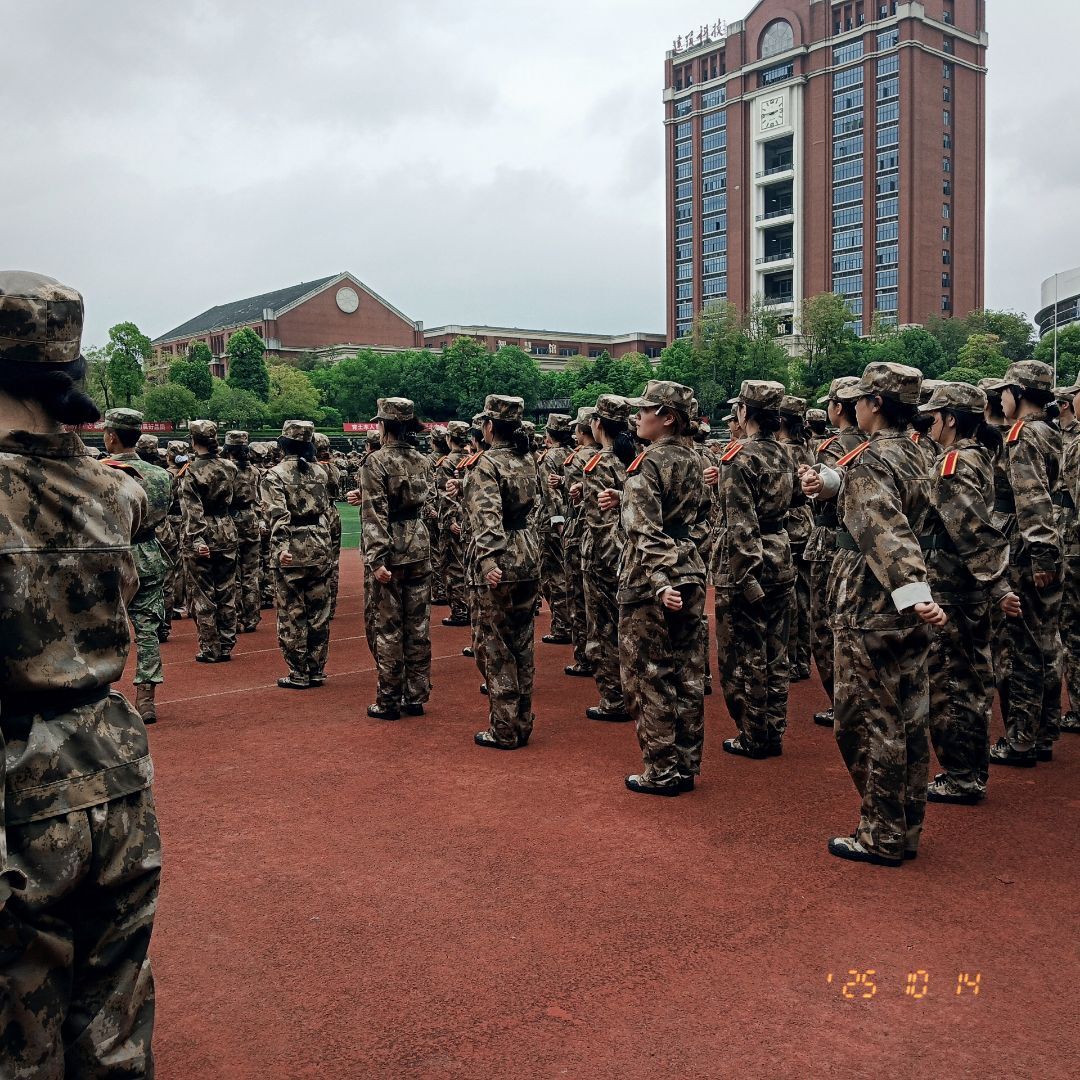 10月14日突降阵雨,康养学子未改训练热情。总教官组织前往避雨处继续训练,他们在雨中保持队列、反复打磨动作,这份在恶劣环境中的坚持,恰是未来康养工作中“急需求所急、想服务对象所想”的责任意识写照。