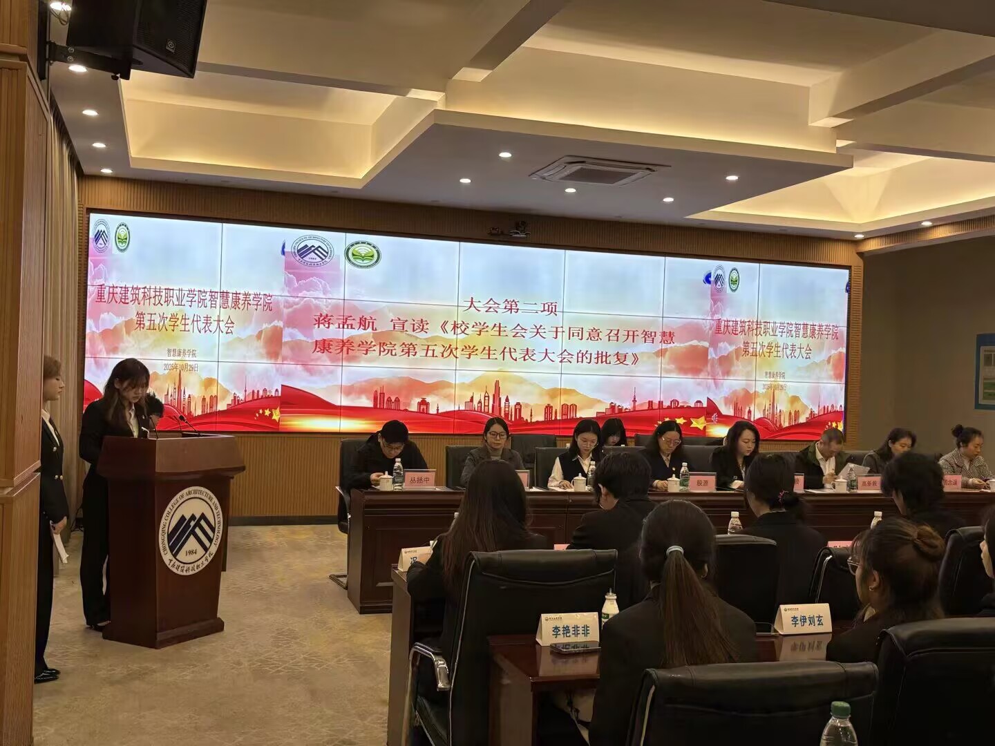 为了维护学生的合法权益和民主权利,不断提高学生的思想道德素质和科学文化素质,20251029日智慧康养学院在立德楼大数据中心召开了第五次学生代表大会,在党总支书记殷源的亲切关怀与团总支书记邹代旖的悉心指导,第五次学生代表大会顺利召开。