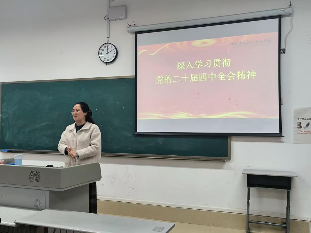 王靖副校长围绕党的二十届四中全会精神作出的重大部署,结合教育领域发展要求展开系统讲解。她指出,党的二十届四中全会精神明确了“十五五”规划发展方向,将教育强国建设纳入统筹推进的重大战略,为新时代教育高质量发展提供了根本遵循,学校作为人才培养主阵地,要把全会精神融入教育教学全过程,以高质量党建引领教育事业提质增效,助力教育强国建设。