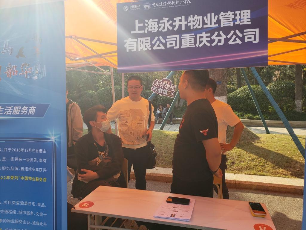 2022年11月2日(星期三)下午,学校针对20级毕业生实习就业举办了大型“双选会”,其中邀请三家一级资质物业服务企业参会,包括上海永升物业管理有限公司重庆分公司、第一太平戴维斯重庆分公司和重庆渝海物业管理有限公司等。此次招聘三家物业服务企业提供的岗位都较为丰富,包括设备工程岗、会议服务岗、人力资源岗、环境绿化岗和商写服务岗等。beat36520级物业管理专业同学积极参与此次双选会招聘,同学们认真制作了自己的应聘简历,穿上职业装充分展现了beat365物业管理专业的风采。