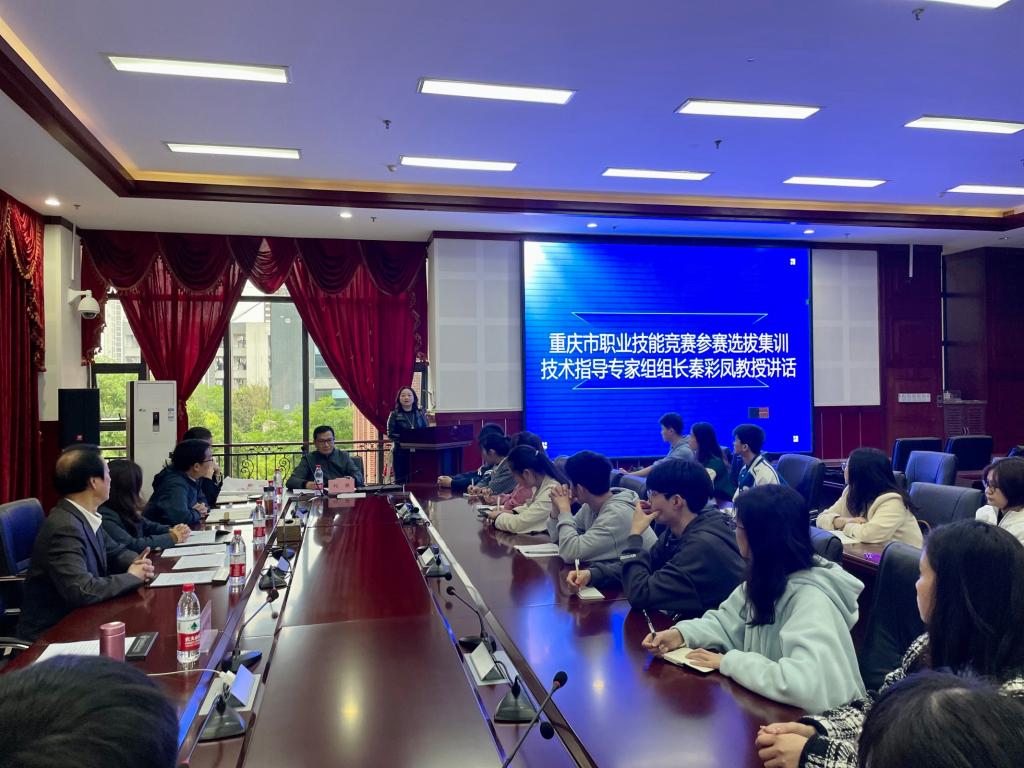 随后选拔集训基地主要负责人和工作人员、教练组成员、集训备赛选手一一做了介绍,大家集体学习了《关于做好中华人民共和国第二届职业技能大赛参赛集训工作的通知》(渝人社办〔2023〕90号)文件。市级技术指导专家分享了集训技术方向、技术思路。秦彩凤教授主要从世赛选拔项目分享了比赛任务模块、技术技能难点和训练心得,郭小曦教授主要从国赛精选项目分享了比赛中常见的问题和备赛的注意事项,提示选手一定要多参与到各类赛事中历练。专家组成员、教练组组长刘轶对目前备赛中的难点和主要竞争者情况进行了分析,提示教练组成员要准确把握技术发展方向,向备赛选手介绍了训练安排和纪律要求。最后,教练组成员带领备赛集训选手参观了基地实训室并现场讲解了首轮阶段性考核集训任务。