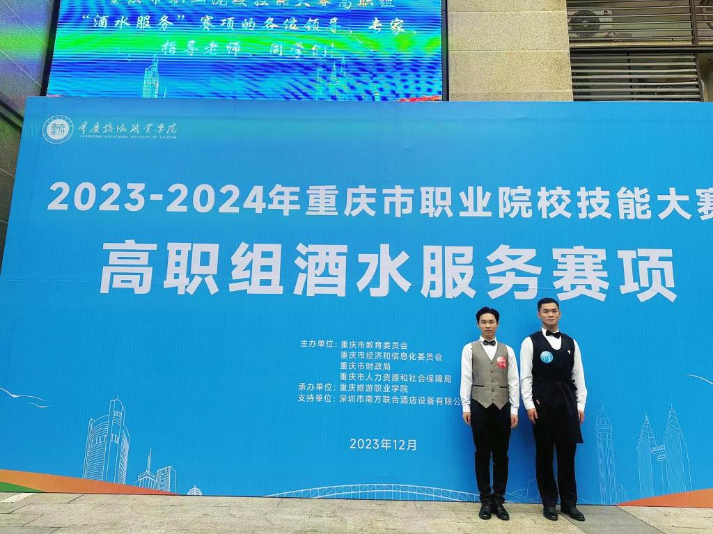 2023年12月18日-19日,2023-2024年重庆市职业院校技能大赛高职组酒水服务赛项落下帷幕。beat365建筑管理学院酒店管理与数字化运营专业学生周亦豪、罗钲杰、黎皖芯、邓智文两个队伍,双双荣获重庆市二等奖,以院校排名第二的成绩,再次客场作战进入该赛项国赛。