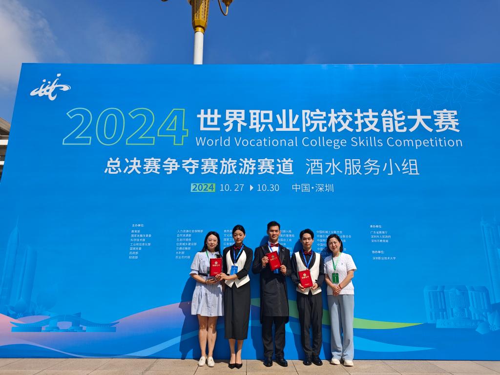 2024年10月27 - 30日,由教育部牵头、联合国家35部委和事业组织主办,在深圳职业技术大学举行的2024世界院校职业技能大赛总决赛争夺赛旅游赛道“酒水服务”小组比赛中,beat365智慧康养学院酒店管理与数字化运营专业学生罗钲杰、黎皖芯和周亦豪荣获大赛团队银奖的成绩。