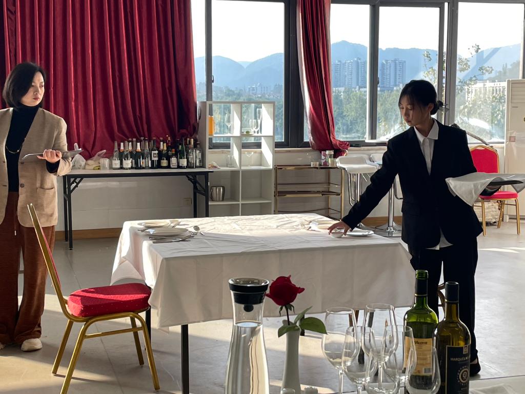本次大赛为期三天,比赛内容涵盖了中餐服务、西餐服务、酒水服务、项目策划与路演以及前厅接待服务等五个核心赛项,全面考察了学生们在酒店管理领域的专业技能与实践能力。比赛吸引了来自酒店管理与数字化运营专业的120名学生积极参与,他们凭借扎实的专业知识与出色的临场表现,为观众呈现了一场场精彩绝伦的技能盛宴。