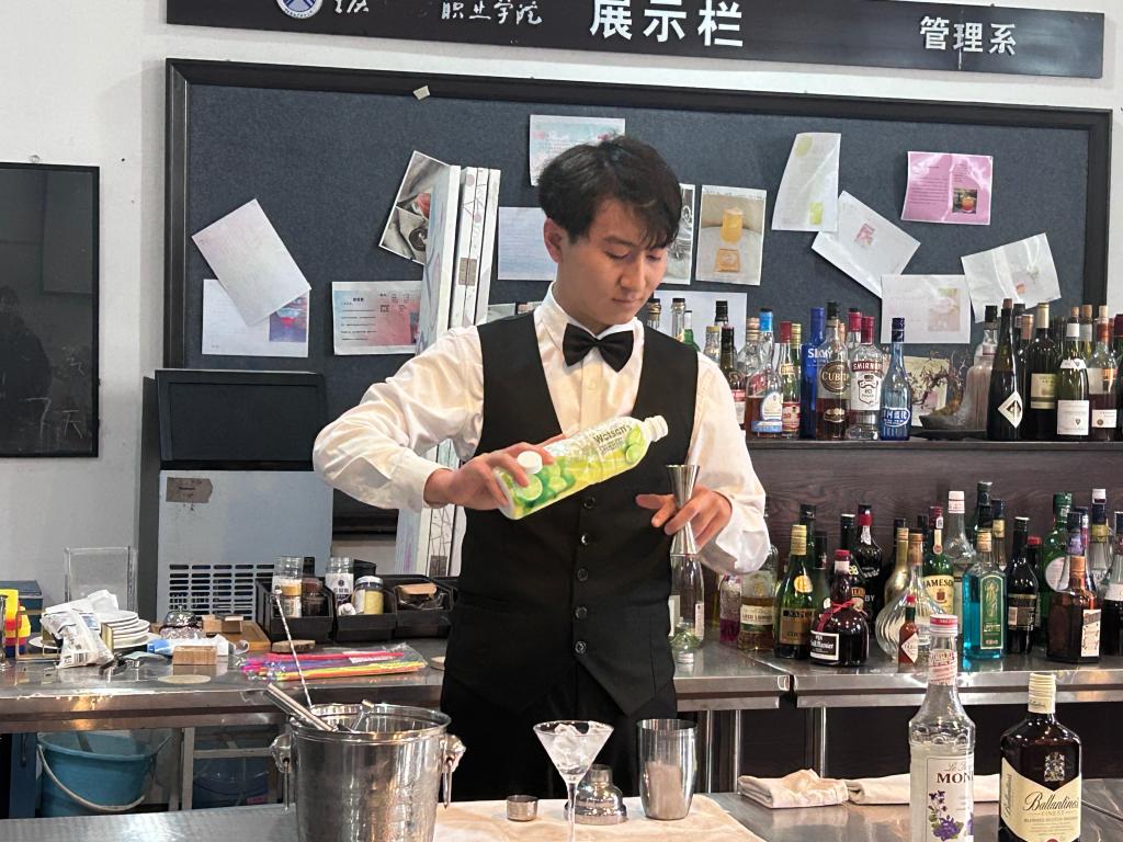 在中餐服务赛项中,选手们展示了高超的餐巾折花、托盘斟酒技能,西餐服务赛项则要求选手们熟练掌握西餐摆台技能与西餐礼仪,展现出国际化的服务水平。酒水服务赛项中,学生们不仅掌握了鸡尾酒调制技巧,还展现了出色的葡萄酒服务技能,项目策划与路演赛项则考验了学生们的创新思维与路演能力,他们结合数字化运营的新趋势,提出了多个具有前瞻性的项目策划方案。前厅接待服务赛项则通过模拟真实的工作场景,检验了学生们的应变能力与服务技巧。