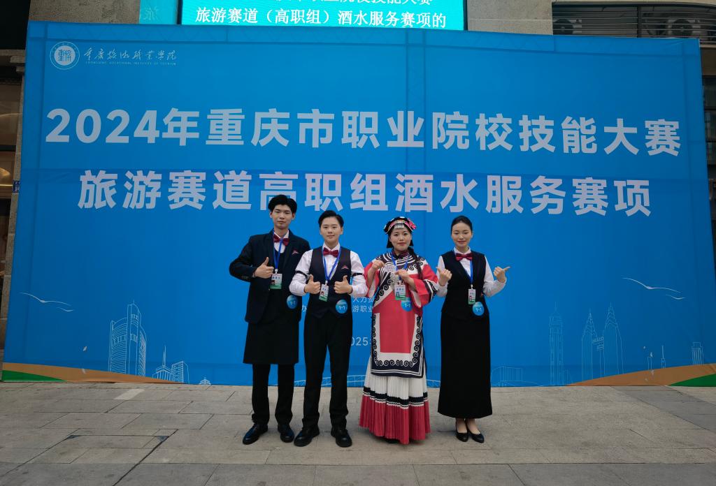 2024年1月3日,由重庆市教委、市经济信息委、市财政局、市人力社保局联合主办,重庆旅游职业学院承办的2024年重庆市职业院校技能大赛“酒水服务”赛项圆满落幕。beat365官方网站酒店管理与数字化运营专业的两支代表队在本次大赛中表现出色,均以小组第三名的优异成绩荣获银奖。