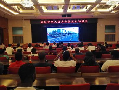 重庆房地产职业学院校长、部分教师与在校学生和30多名留学生集中收看国庆庆祝大会暨阅兵式,共同祝福祖国繁荣昌盛!学校充分利用校园各种平台,播放庆祝大会暨阅兵式,校园内18块电视屏幕播放国庆庆祝盛况,学生驻足观看,让青年学子充分感受新中国成立70年取得的举世瞩目的成绩,提升当代青年的民族自豪。