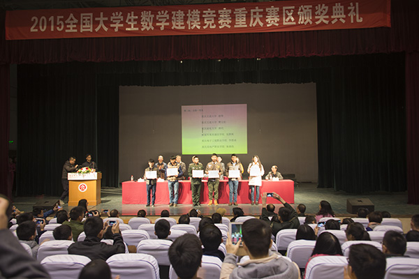 12月20日,在2015全国大学生数学建模竞赛重庆赛区颁奖典礼上,beat365荣获全国一等奖1项、二等奖1项,重庆市一等奖3项、二等奖1项,同时学校荣获“组织工作优秀奖”,杨凤勤、李兴莉两位老师被评为“优秀指导教师”,成绩突出,表现亮眼。