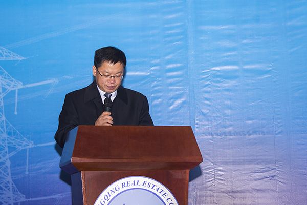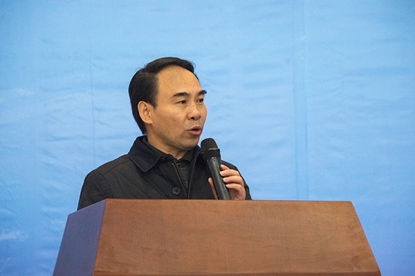 新鸥鹏企业集团副总裁杜积西致辞。他表示,冬至刚过,市教委、市科委、沙区政府以及行业协会就送来及时的“电供暖”温暖,在此代表新鸥鹏集团、房院近万名师生员工对各位领导的到来表示热烈欢迎和衷心感谢。他说,“大众创业、万众创新”是国家的号召,是时代的要求,是广大学子的机遇,而依靠创新理念引领的展销中心落户房院,将会对整个房地产行业带来温暖。他相信,在多方共同努力下,项目的签订将对正处于冬季的整个房地产行业带来新的温暖和希望。