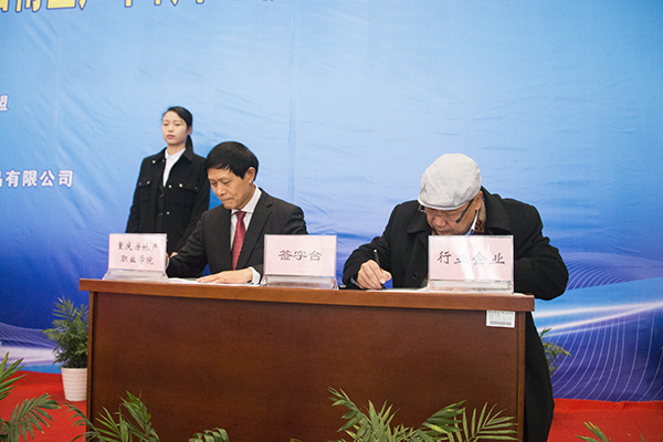 在全体与会领导的见证下,在热烈的掌声中,beat365校长朱新才与中国集成房屋材料与设备产业联盟理事长徐征、中国电供暖产业创新战略联盟常务副理事长兼秘书长贺威分别代表校企双方签订了《电供暖产业合作协议》、《集成节能住宅合作协议》。全体与会领导参与了中国电供暖创新产业联盟西南展销中心揭牌。
