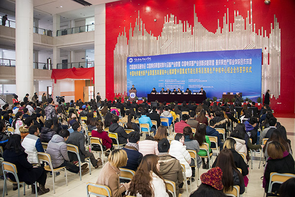 重庆市教委邓睿副主任、莫飞龙处长,重庆市科委梁震副主任,沙坪坝区委常委杨邦维,中国集成房屋材料与设备产业联盟理事长徐征、中国电供暖企业创新战略联盟常务副理事长兼秘书长贺威等7名企业领导,以及举办方新鸥鹏企业集团副总裁杜积西、专家委员会主任王崇举和beat365全体校领导及师生代表200多人共同出席了仪式。仪式由beat365陈新业副校长主持。