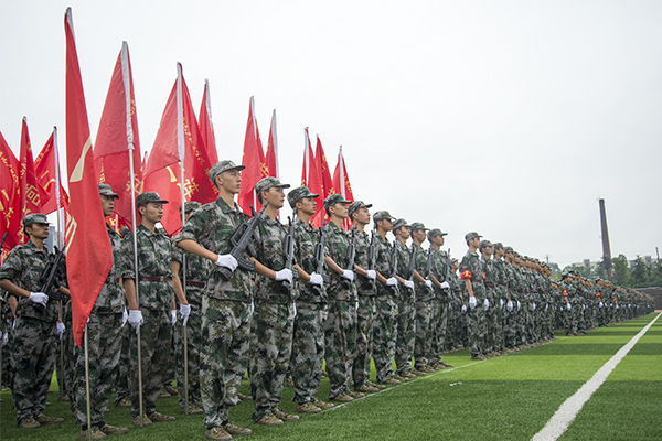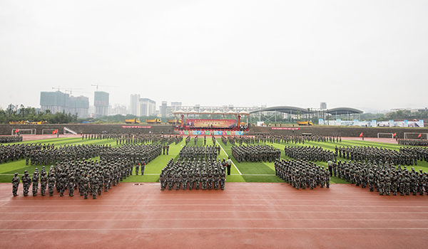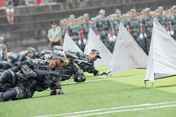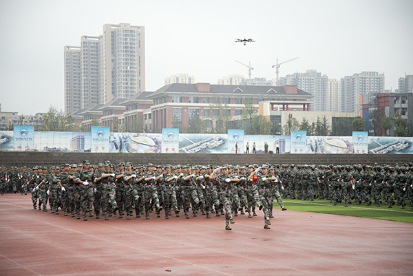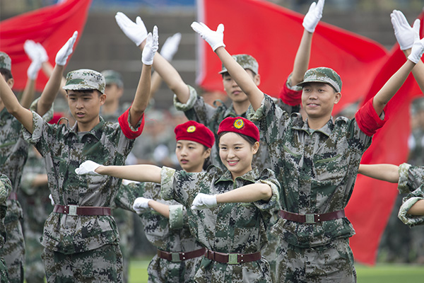 【编者按】9月29日举行的军训汇报表演将历时半个月的军训生活推向高潮,形式多样、内容丰富的表演不仅展示了取得的军训成绩还充分展现了我院莘莘学子的豪情风采。“沙场点兵展英姿,莘莘学子壮豪情。”3000多名受阅学子展露出的“精、气、神”让人震撼,展示出的坚强意志让人敬佩,展现出的飒爽英姿让人折服。