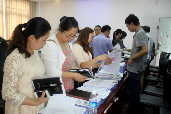 在各系党总支(支部)书记简要汇报了本系工作特色与亮点之后,参会人员围绕各系展出的学生工作原始资料,展开了热烈的交流学习。设备系的思政教育自编教材、建工系学生干部逐日查课记载与张贴公示和辅导员王源管理的“零补考班”记载、成控系党建基础工作资料和班级管理量化逐月考核细则及辅导员邓赛君所管学生每人一个档案袋以及内装学生入学以来记载表现的原始资料、金融系的校企合作和首届校友会及辅导员余婷的查课记录、营销系的校企合作成效及本期学生两次参加国赛获奖原件、环艺系学生安全教育与毕业生就业亮点、管理系“一系一品”项目暨“职业人大赛活动”的传承和创新、研发系的实习实训和网站建设等工作资料引起了参会者的极大兴趣,大家仔细翻看原始资料,认真交流、探讨工作方法,现场学习气氛十分热烈。