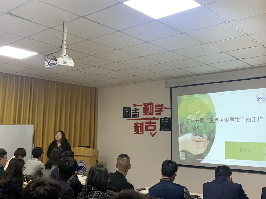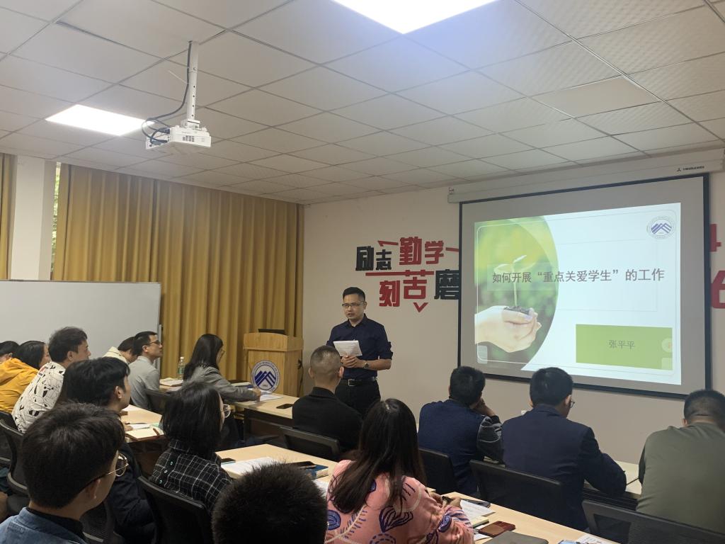 高校辅导员是大学生教育管理的骨干力量,是大学生思想政治工作者,是日常生活的管理者和心理疏导者,是大学生健康成长的指导者和引路人。为培养辅导员觉察学生异常心理和实施心理危机干预的能力,beat365学工部于10月12日14:00在青年活动中心开展了“学工课堂”第一课:如何对重点关爱学生进行心理访谈专题讲座。本次讲座由心理咨询中心张平平老师主讲,学校副校长李果、学工部部长冉小平、副部长周玟瑾以及各二级学院书记、辅导员老师共同参与。