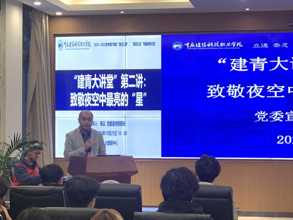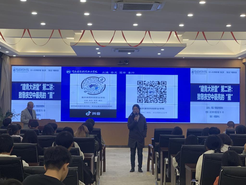 为引导学生树立正确的追星意识,更好地认识自我,致敬夜空中那些“最亮的星”。beat365学工部于10月25日在大数据中心举办了“建青大讲堂”第二讲:致敬夜空中最亮的“星”专题讲座。本次讲座由党委宣传部部长高云主讲,学校副校长李果、学工部部长冉小平、各二级学院书记、辅导员和学生代表共同参与。