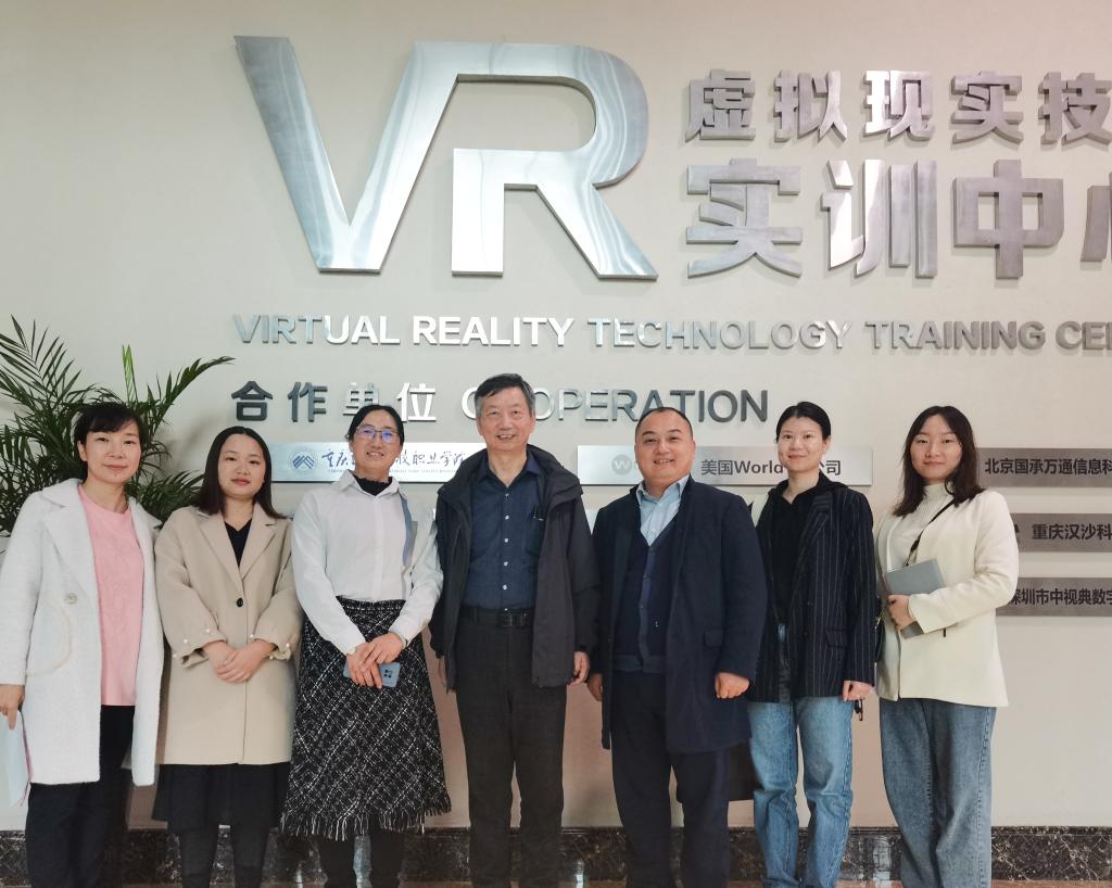 会后,乐勇秘书长一行在王靖处长等工作人员陪同下一同前往学校科技楼,考察指导虚拟现实技术实训中心等国际化实训基地。