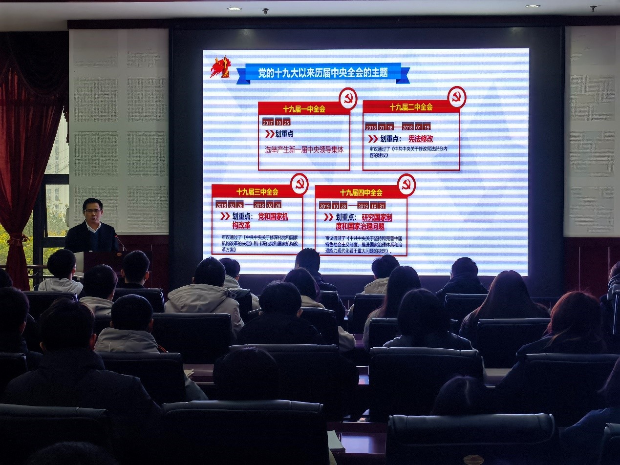 12月23日,学校党委副书记李果走进笃学楼4305,为智能制造工程学院师生代表作“学习贯彻党的十九届六中全会精神”宣讲报告。