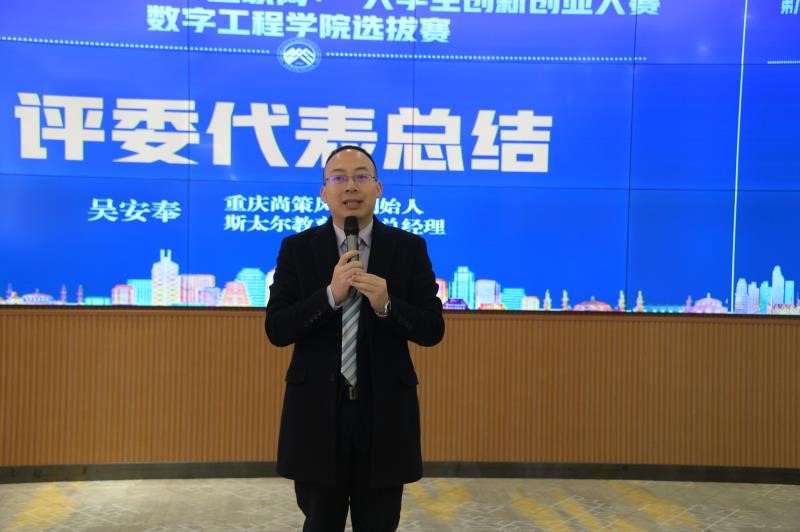 路演答辩环节中,来自数字工程学院的18个学生项目团队经过激烈的角逐,分别评出了一等奖二等奖三等奖各一名,评委们以学生项目的市场调查、风险评估、商业模式、产品服务等方面提出了指导建议。同时吴安奉总经理从问题导向、竞争导向、价值导向、成果导向,为同学们厘清思路。提出建立跨学院、跨学科合作平台的宝贵建议。