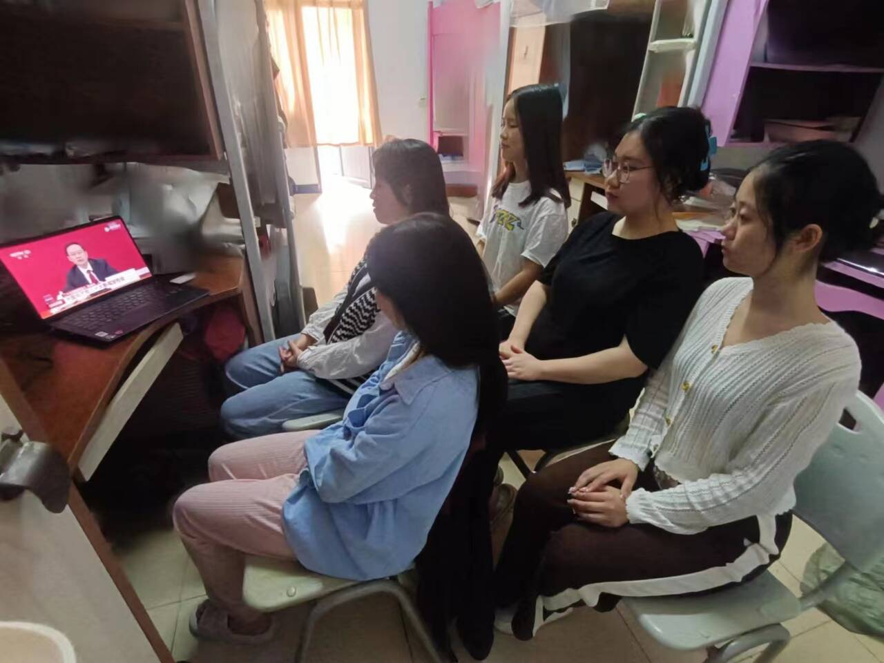 学生在宿舍观看二十大开幕会(三)