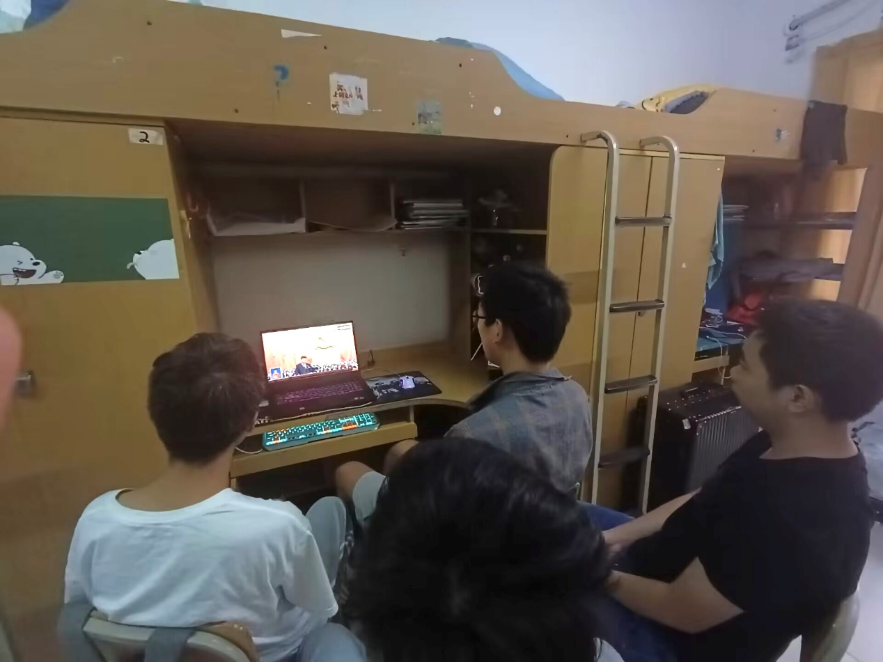 学生在宿舍观看二十大开幕会(二)