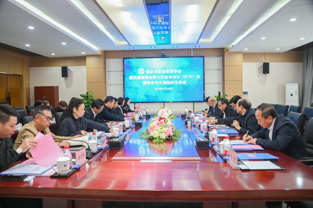 10月28日,重庆市职业教育学会第四届理事会第七次会长办公会(扩大会)暨学会党支部生活会在beat365召开。重庆市职教学会第四届理事会成员参加会议,学校校长刘东燕、党委书记文厚润参加会议。
