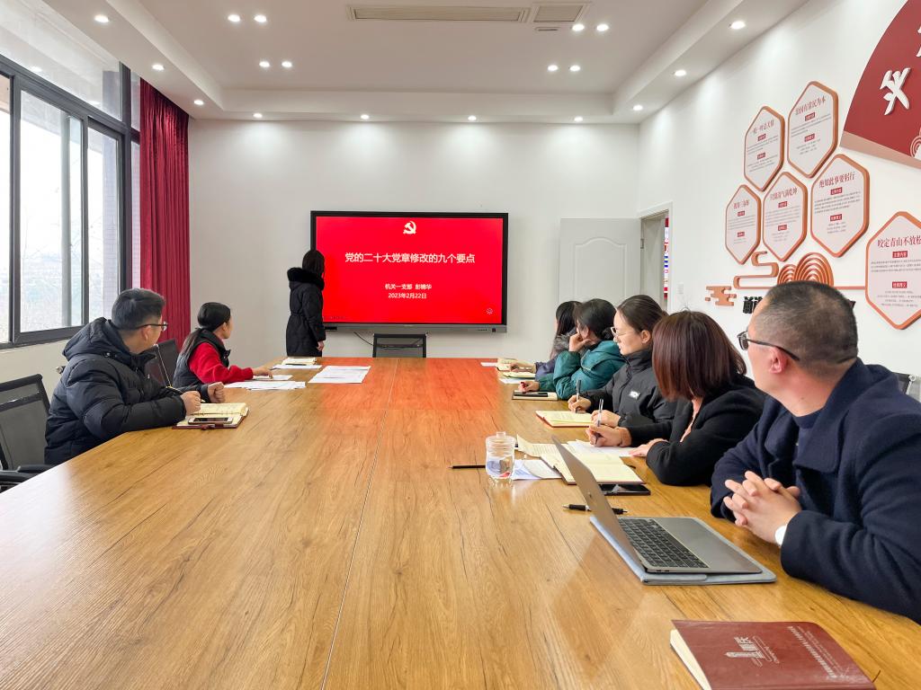 会议组织学习领会了党的二十大报告内容解读、习近平总书记在学习贯彻党的二十大精神研讨班开班式上重要讲话精神、习近平总书记在中共中央政治局会议上的讲话精神等内容,并对党的二十大党章修改的九个要点进行重点强调。