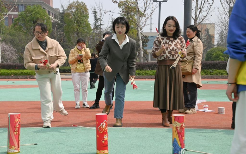 这场趣味活动有投壶、打保龄球和蒙眼摸乒乓球等3个游戏,参与者根据游戏的得分再进行套圈领奖,活动现场气氛热烈,欢声笑语不断。这场趣味活动增强了女教职工的凝聚力和向心力,充分展示了新时代女性的风采,弘扬了自尊自爱自信自强的“三八”精神。