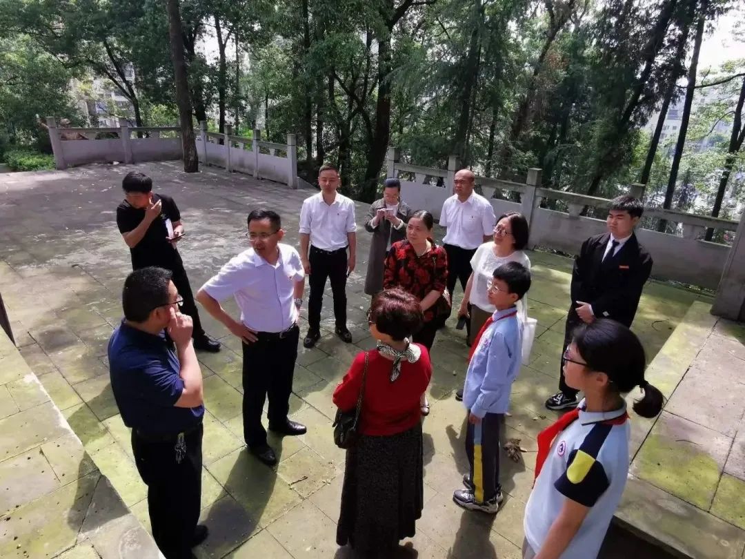 调研团首先来到垫江县烈士陵园,听四位少先队员生动地讲解烈士们的英勇事迹,全体调研人员在烈士塔下无不动容,深切缅怀长眠在此的革命先烈。随后调研团去往垫江中学寻访烈士陈鼎华的足迹。垫江中学是烈士陈鼎华开展地下党工作和被捕的地方。走在校园里,陈鼎华的妹妹陈伦华看到宣传栏里展出的哥哥的事迹,百感交集,忍不住流下了眼泪。