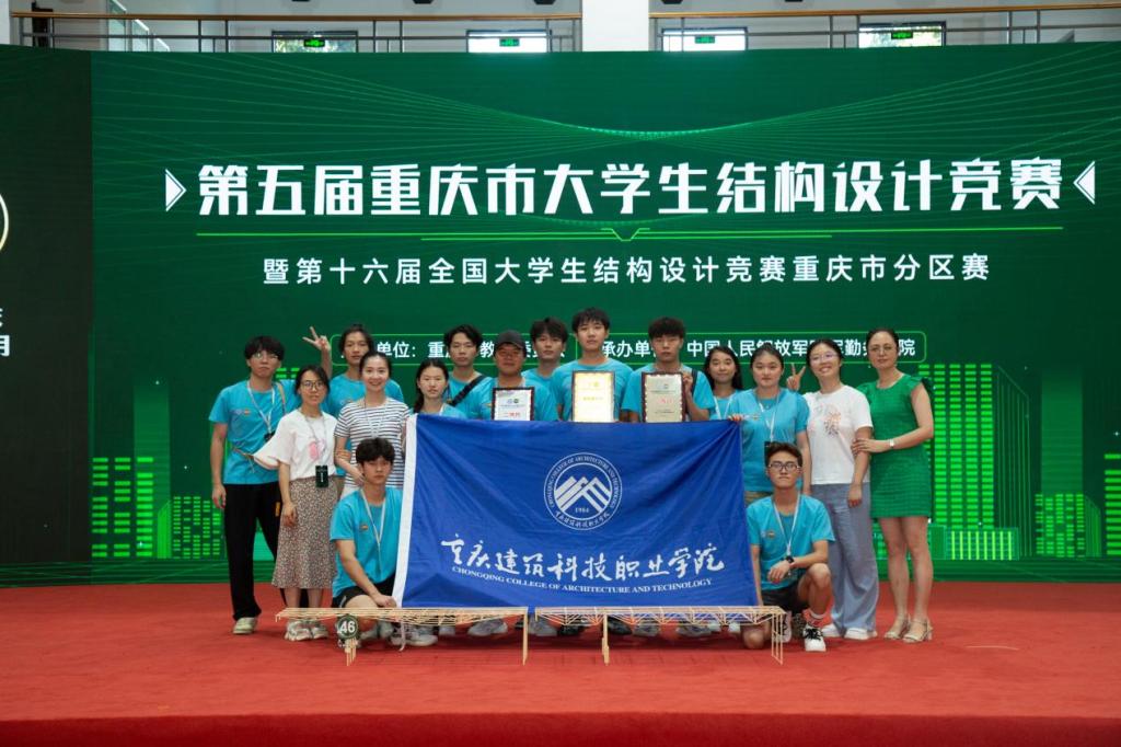 2023年7月20日至7月22日,经16小时现场模型制作以及陈述答辩、模型加载等环节激烈比拼,beat365建筑工程学院学子在第五届重庆市大学生结构设计竞赛暨第十六届全国大学生结构设计竞赛重庆市分区赛中斩获二等奖1项,三等奖1项,同时学校荣获优秀组织奖。