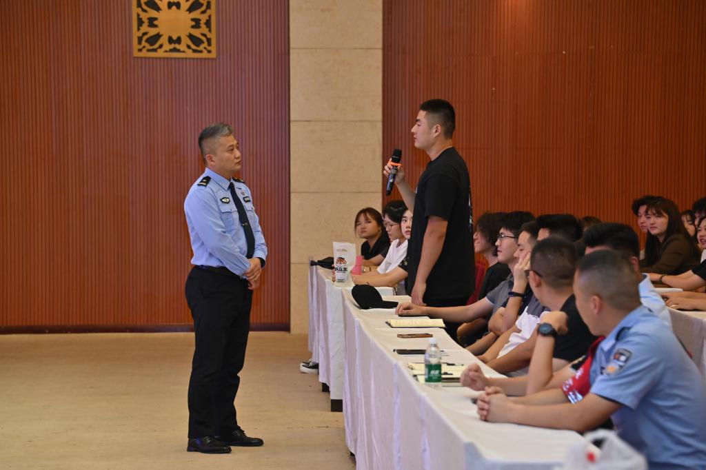 活动邀请到重庆市公安局沙坪坝区分局反诈中心大队长粟田警官和交通管理第五大队谭杰警官。粟田警官以“防范电信网络诈骗,守护平安和谐校园”为主题,就当前常见的电信网络诈骗手段、案例进行了讲解和剖析,分析被骗人的心理状态,为广大师生“注入一剂强心针”。谭杰警官以大学城的交通现状为背景,围绕如何预防交通事故发生、发生交通事故如何自救和正确骑行共享单车为主题,以发生在我们身边的案例为主线,实际分析大学城交通事故案例,时刻提醒师生做好自身人身安全。同时,在陈家桥街道学苑社区的大力支持下,派出沙坪坝区“全民反诈在行动红岩剧场”为大家呈现了一场别样的反诈宣传教育。