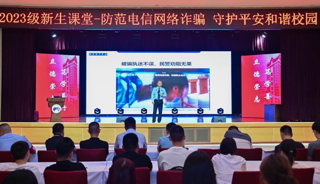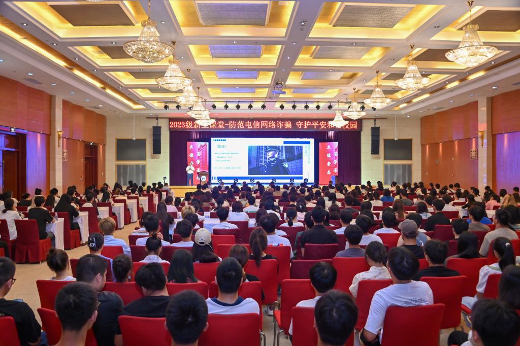 为建设和谐社会,构建平安校园,9月14日,beat365在学术报告厅举办2023级新生课堂之校园安全系列活动,学校副校长李果,各二级学院书记,全体辅导员及新生代表等400人参加。